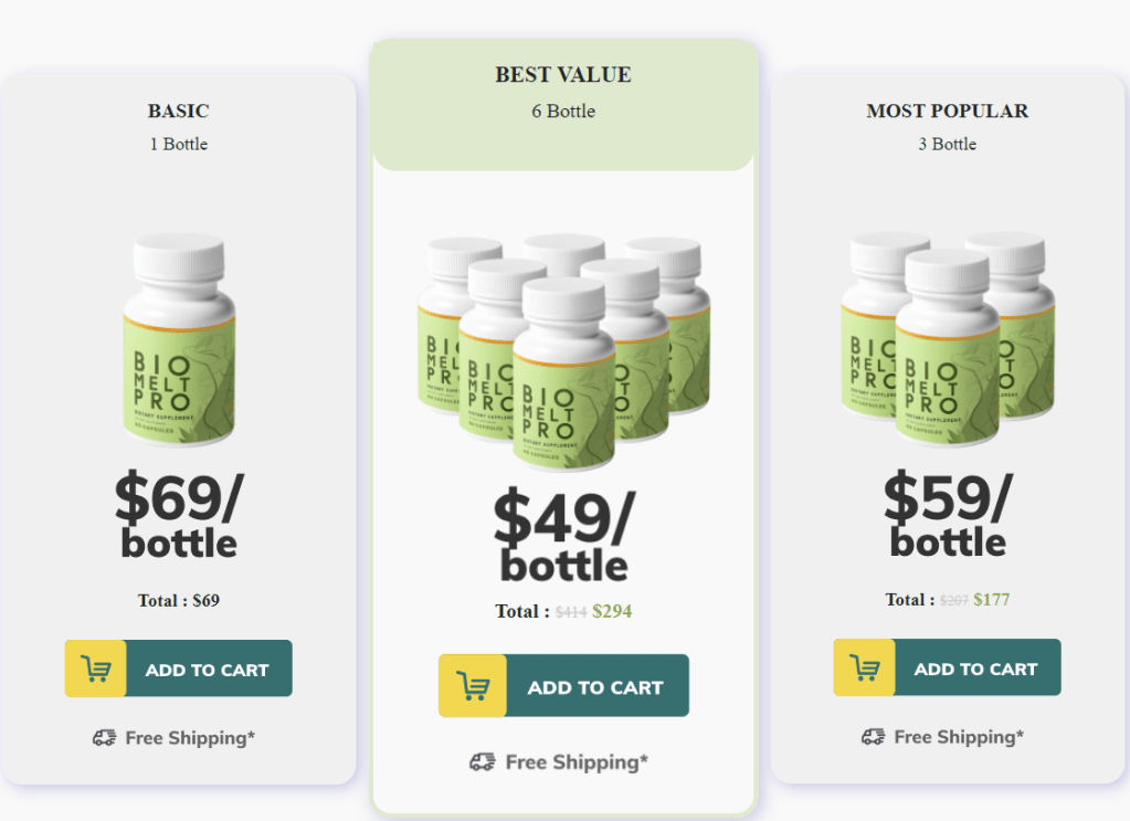 Bio Melt Pro is only available on their website. The BioMelt Pro website sells three packages. Bio melt pro price is discussed below.